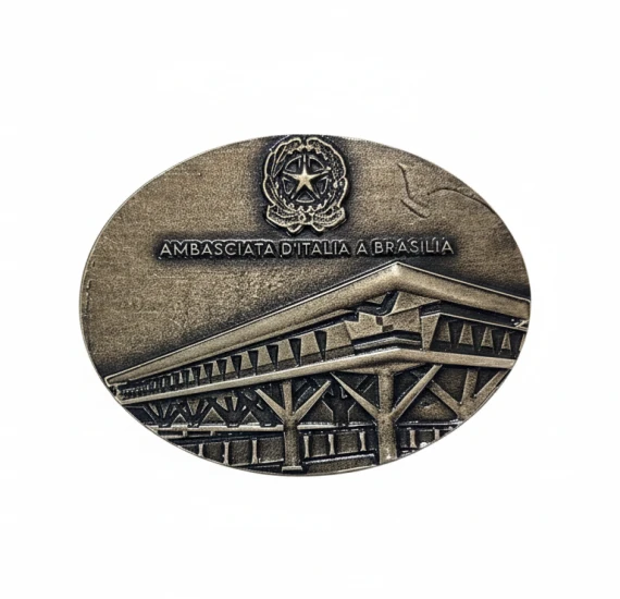 A Medalha Institucional Fundida em Zamac é desenvolvida para homenagens de alto nível, reconhecimentos oficiais e distinções institucionais. Produzida pelo mesmo processo das medalhas fundidas tradicionais, porém sem fita, ela é apresentada exclusivamente em estojo aveludado, valorizando ainda mais o momento da entrega. Permite personalização total em alto e baixo relevo, com pigmentação em cores e aplicação de resina cristal, garantindo riqueza de detalhes, profundidade visual e acabamento sofisticado. Ideal para órgãos públicos, forças de segurança, instituições diplomáticas, empresas e homenagens formais.