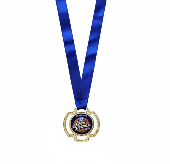 Medalha em zamac de 75mm com personalização em adesivo vinílico laminado de alta qualidade e cobertura em resina cristal, garantindo brilho intenso e acabamento premium. Ideal para premiações que exigem qualidade e destaque.