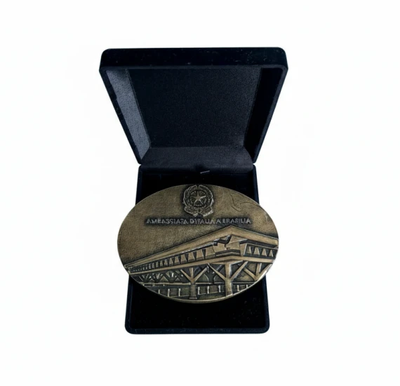 A Medalha Institucional Fundida em Zamac é desenvolvida para homenagens de alto nível, reconhecimentos oficiais e distinções institucionais. Produzida pelo mesmo processo das medalhas fundidas tradicionais, porém sem fita, ela é apresentada exclusivamente em estojo aveludado, valorizando ainda mais o momento da entrega. Permite personalização total em alto e baixo relevo, com pigmentação em cores e aplicação de resina cristal, garantindo riqueza de detalhes, profundidade visual e acabamento sofisticado. Ideal para órgãos públicos, forças de segurança, instituições diplomáticas, empresas e homenagens formais.
