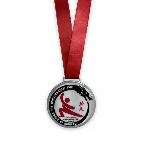 Medalha personalizada de 80mm produzida em ferro de formato circular, com adesivo exclusivo e acabamento resinado de alto brilho. Uma peça mais pesada e robusta, ideal para eventos que exigem presença, durabilidade e valorização da conquista.