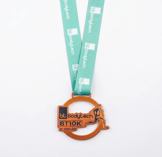 Medalha personalizada de 70mm produzida em ferro de formato circular, modelo BodyTech, com adesivo exclusivo e acabamento resinado de alto brilho. Uma peça mais pesada e robusta, ideal para eventos que exigem presença, durabilidade e valorização da conquista.
