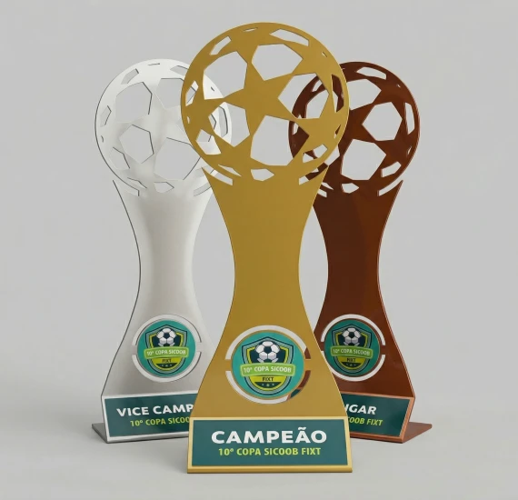 Troféu produzido em ferro de alta qualidade com estrutura dobrada, proporcionando resistência, firmeza e estabilidade à peça. O design moderno aliado à robustez do material garante presença marcante na premiação. A personalização é aplicada tanto na parte central do troféu quanto no rodapé, permitindo incluir logotipo do evento, categoria, colocação, modalidade ou qualquer informação necessária. Finalizado com resina cristal para brilho intenso e proteção superior, é uma peça durável, sofisticada e totalmente personalizável.