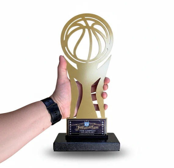 Troféu produzido em ferro de alta resistência com corte a laser de precisão e base em mármore natural, garantindo peso, estabilidade e imponência na premiação. A combinação do ferro robusto com o mármore maciço transmite autoridade, valor e respeito ao reconhecimento. Finalizado com resina cristal para brilho intenso e proteção superior, é uma peça durável, sofisticada e feita para marcar momentos importantes.